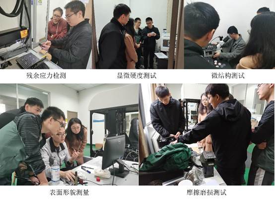 研究生九支部陈地发、张秀华、魏东、严欢及吴少杰同学分别详细介绍了残余应力、表面形貌、摩擦磨损、微结构及显微硬度等表征设备的测试原理、操作方法以及注意事项。在培训过程中,培训人员针对具体的零件的表面完整性进行实操讲解。同学们认真聆听仪器的操作流程,并针有疑问的地方,大胆提出自己的问题。针对同学们提出的问题,各个培训人员进行了耐心的解答。经过三个多小时的培训讲解,本次活动圆满结束,经过此次表面完整性表征培训活动,坚定了同学们深耕于高性能齿轮抗疲劳制造领域的决心。