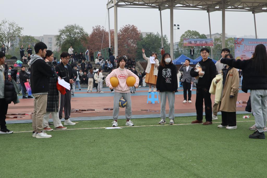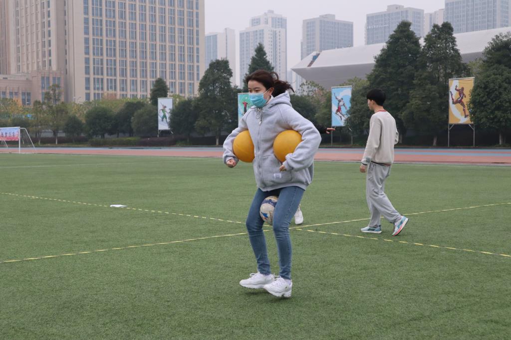 第二个开始的项目是“企鹅漫步”,此项目主要考验个人的弹跳能力及手部、腿部夹球的平衡性,参赛队员结合赛前练习时的经验,本着“稳中求快”的原则,在追求零失误的同时,采取最适合自己的夹球方式和移动方式提升速度。最终我院在此项目获得第六名,多位同学以自己跳跃式、踱步式的独特的运球方式赢得了现场观众的称赞与鼓励。